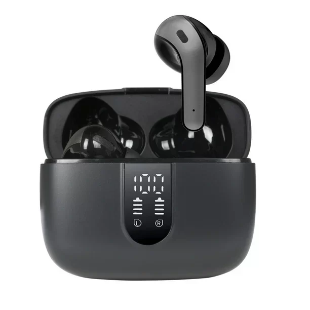 Pantalla de alimentación LED y reproducción de 60 horas: la pantalla de alimentación LED digital dual fuera de la funda es para mostrar el nivel de potencia para la funda de carga y los auriculares