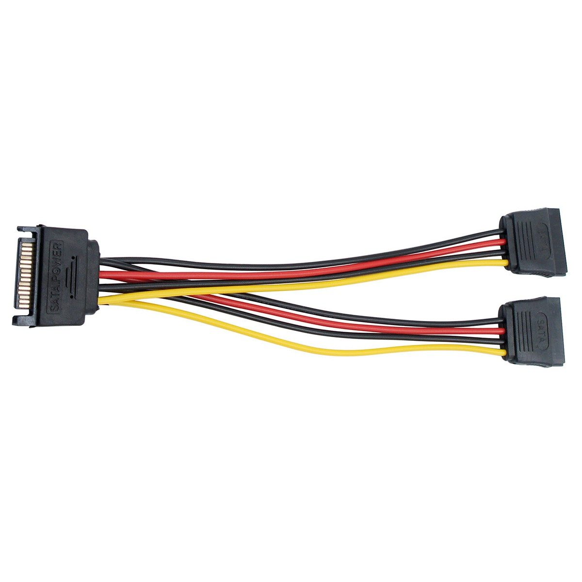 El cable SATA Y-SPLITTER alimenta dos discos duros seriales ATA, SSD, unidades ópticas, grabadores de DVD y tarjetas PCI a una sola conexión en una fuente de alimentación de computadora; el conector SATA de la unidad de ajuste cómodo y las guías de canal en el conector de la fuente de alimentación proporcionan una conexión segura que no se desconecta accidentalmente