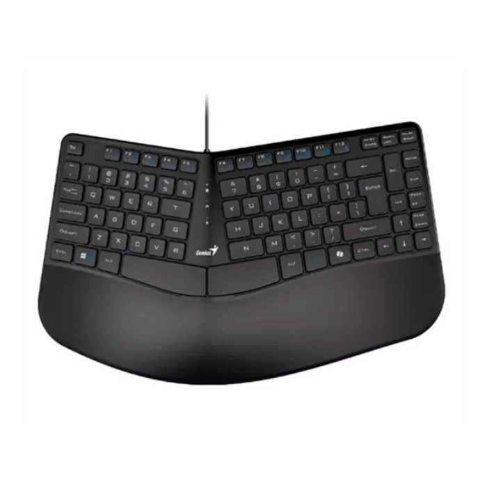 Teclado ergonómico de membrana con conexión USB y distribución en español. Diseñado para reducir la tensión en las muñecas y proporcionar comodidad en sesiones prolongadas de trabajo. Dispone de teclas multimedia y acceso rápido para mejorar la productividad.